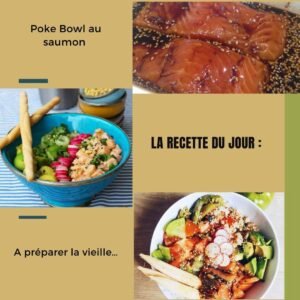 - Poke Bowl au saumon mariné soja, miel, sésame