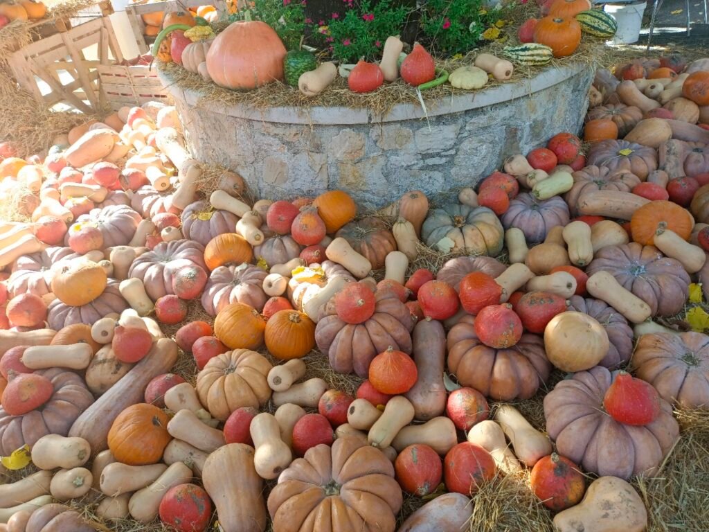 Aujourd’hui, les rues, les places et même les rebords de fontaines se recouvrent de plus de deux tonnes de cucurbitacées : potimarrons, butternuts, giraumons, sucrines et courges spaghetti s’exposent avec fierté dans un décor champêtre fait de bottes de paille et de brouettes fleuries.