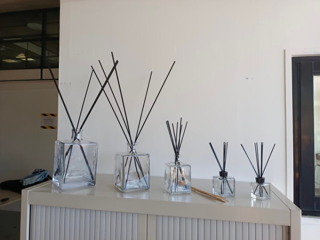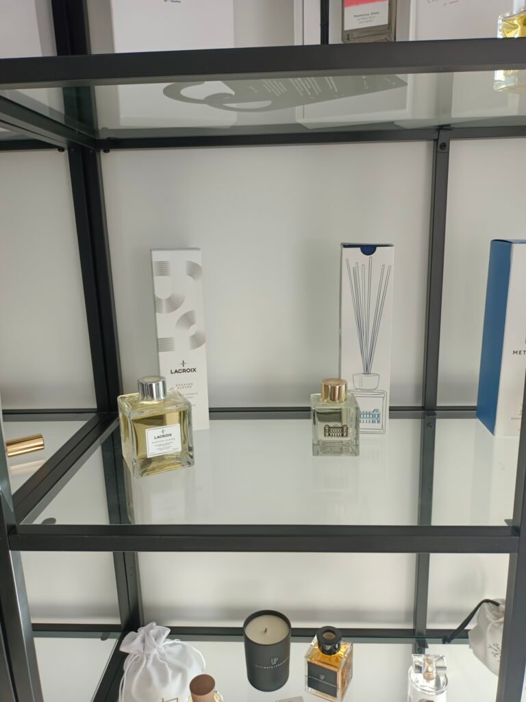 Derrière les portes, un atelier moderne et lumineux, un espace de stockage, mais aussi un showroom élégant où trônent diffuseurs, bougies et flacons raffinés.