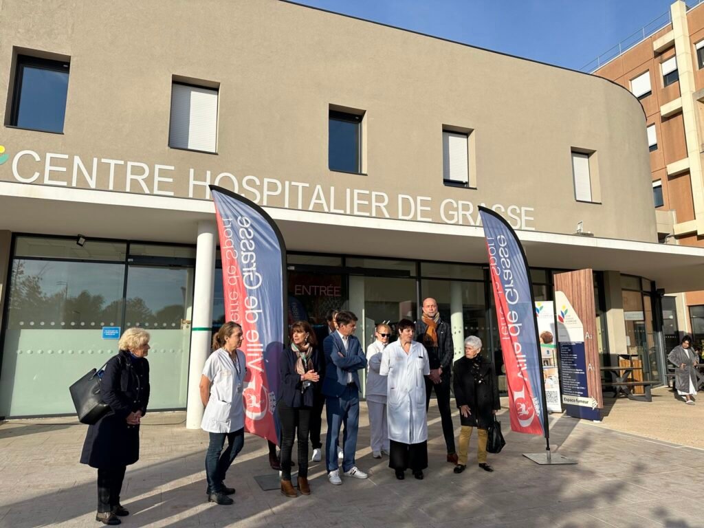 Ce lundi 10 novembre, devant l’entrée du Centre Hospitalier de Grasse, un moment fort d’émotion et d’engagement collectif s’est tenu : la remise officielle du chèque issu de l’édition 2025 de Courir en Rose. Jérôme Viaud, maire de Grasse, accompagné d’élus, de représentants associatifs, de bénévoles et des équipes hospitalières, a symboliquement transmis un chèque de 7 281 € au Centre de Coordination en Cancérologie.