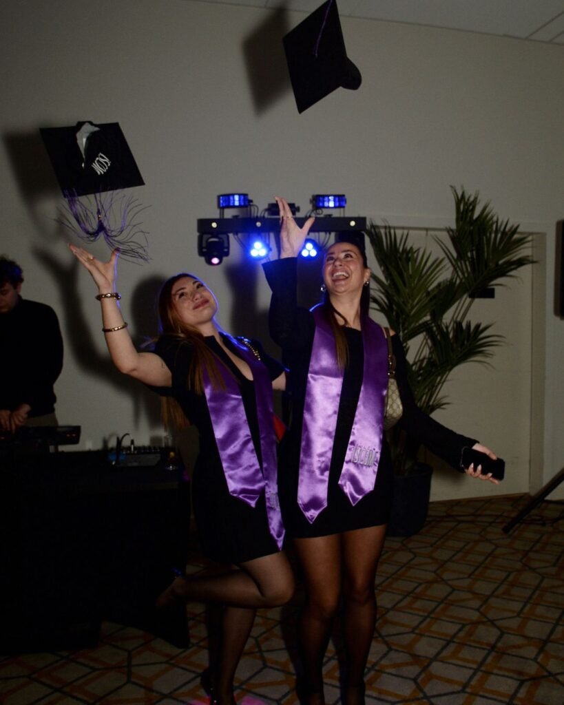 Les regards fiers des familles, l’enthousiasme des équipes pédagogiques et l’émotion palpable des diplômés ont rythmé cette soirée. Robes élégantes, toques lancées en l’air, écharpes violettes frappées du nom de l’école : les images témoignent d’un accomplissement collectif.