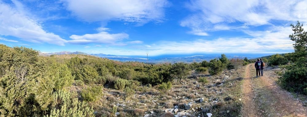 Itinéraire traversant des contreforts ensoleillés, dévoilant des paysages variés et des vues sur le littoral ouest, marqué par l’histoire des campagnes dédiées à la culture des plantes à parfum.