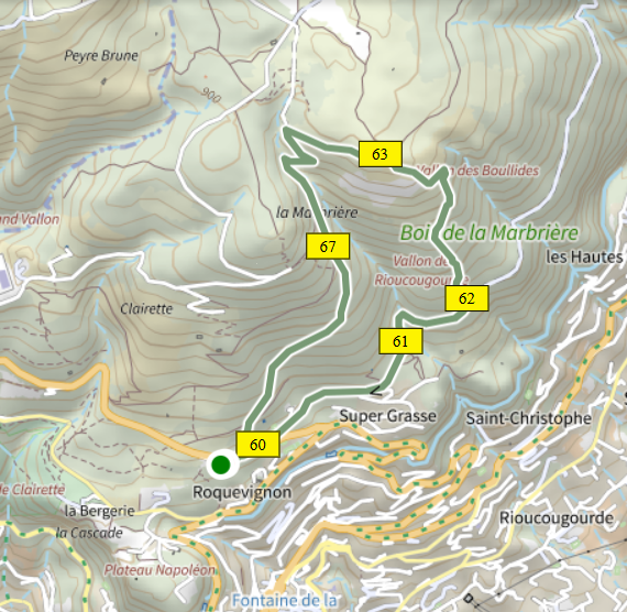 - Couper une piste forestière et continuer à flanc jusqu’à la piste au quartier la Marbrière (b.67),