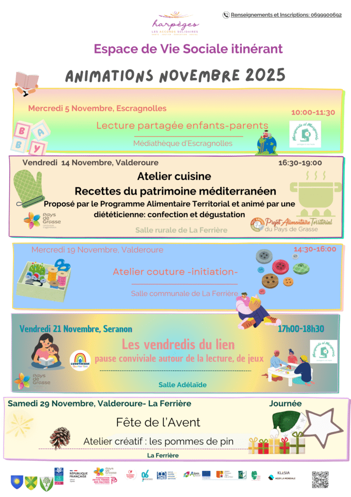 Au programme : ateliers coutures familles et adultes, temps des séniors, jeux intergénérationnels, atelier numérique, et dessin pour tous. Sans oublier les rencontres enfants parents 0-6 ans.