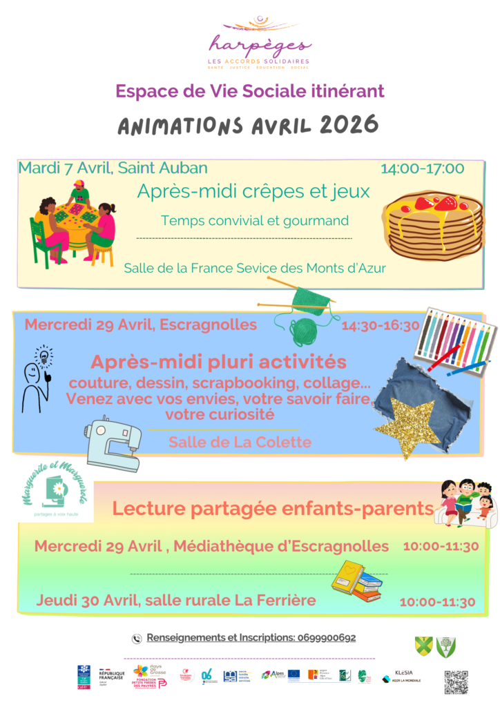 Au programme : ateliers coutures familles et adultes, temps des séniors, jeux intergénérationnels, atelier numérique, et dessin pour tous. Sans oublier les rencontres enfants parents 0-6 ans.
