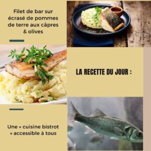 - Filet de bar sur écrasé de pommes de terre aux câpres & olives
