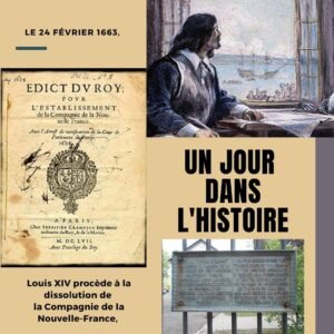 - Le 24 février 1663, Louis XIV procède à la dissolution de la Compagnie de la Nouvelle-France,